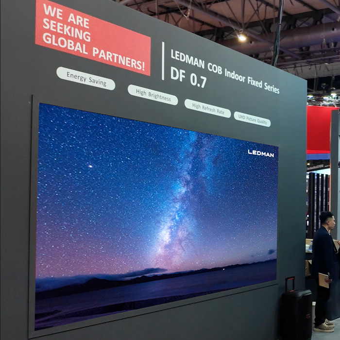 雷曼DF0.7超高清4K顯示屏搭載廣電級性能,支持7680Hz刷新率與120Hz換幀率,小箱體可自由拼接,適配3D影院、指揮中心等多元場景。
