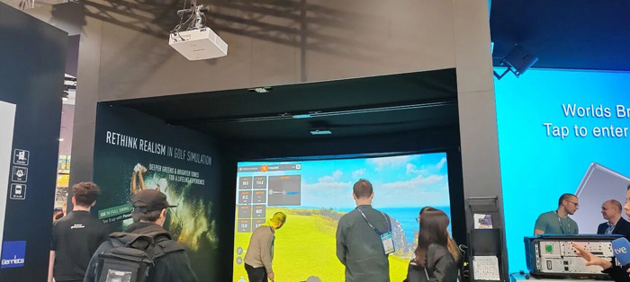 在ISE 2026松下展臺中,參觀者還有機會在松下投影技術(shù)驅(qū)動的高爾夫模擬器中一展身手。這是本次展會上,松下影像顯示又一款首次發(fā)布的新產(chǎn)品——全新的4K液晶激光投影機PT-BAQ855C系列。