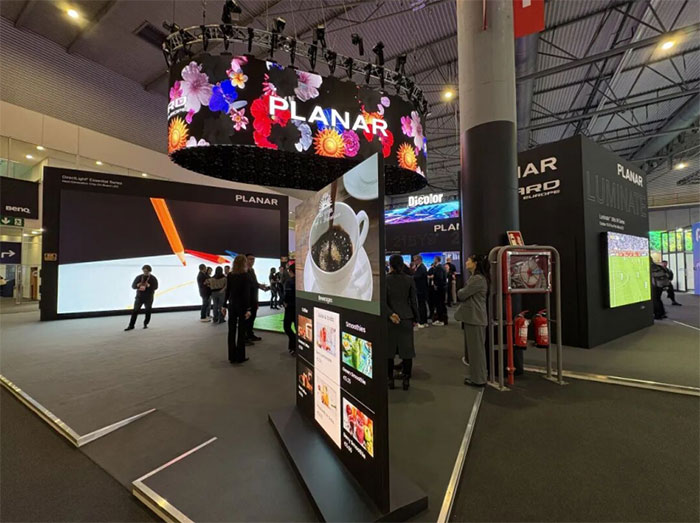 全新Planar®DirectLight® Essential 系列成為展臺焦點,其打造的巨型LED顯示屏對角線長度達27英尺(超8米),憑借0.9毫米像素間距與8K超高清分辨率,可呈現(xiàn)極致逼真的全彩畫面,還原真實視界。產(chǎn)品采用COB技術(shù)打造,兼具高像素密度、高能效與強耐用性,獨特LED分選工藝及專有驅(qū)動IC,有效改善亮度與色彩一致性問題,并支持前維護設(shè)計。