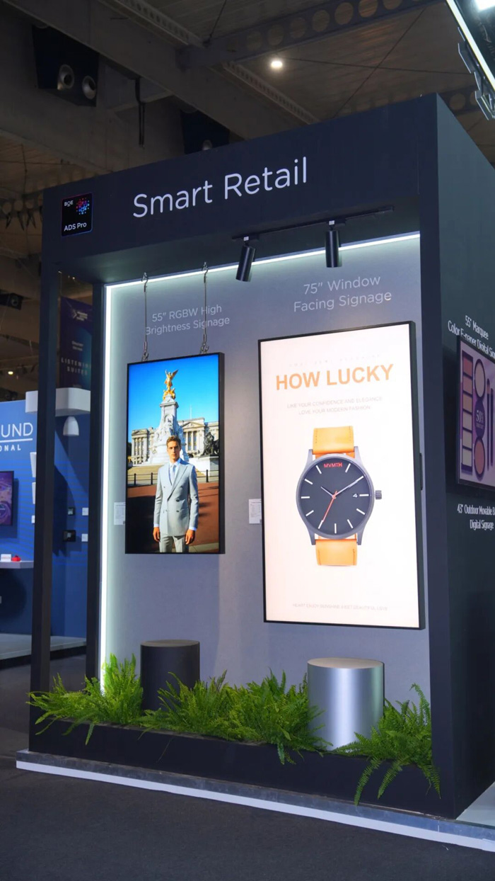 商業(yè)顯示的核心在于“清晰可見”。海信商顯此次帶來的戶內(nèi)外高亮顯示矩陣,以創(chuàng)新技術(shù)有效克服環(huán)境光線干擾,確保內(nèi)容時刻清晰呈現(xiàn)。