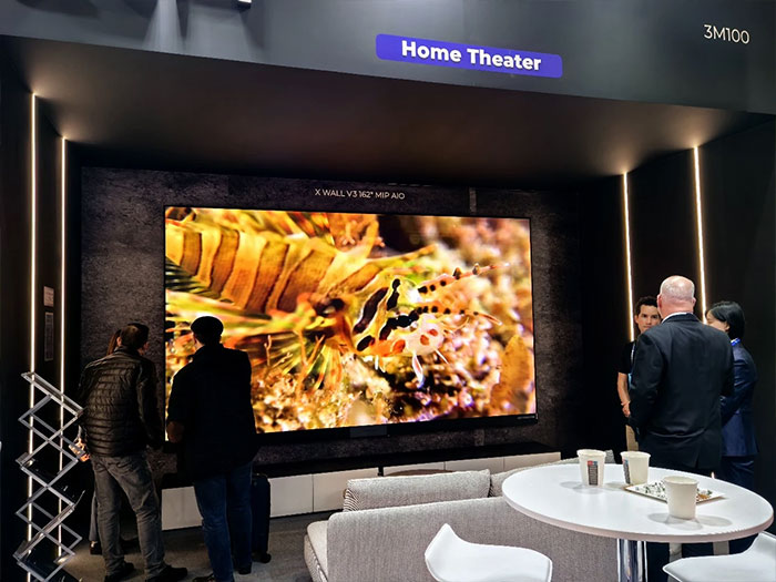 此外,全球最高畫質(zhì)MLED顯示(163")同樣面向高端商業(yè)展示與賽事直播等場景,通過超低反封裝材料與像素級混合驅(qū)動架構(gòu),實現(xiàn)高達37500:1的對比度與24bit位深表現(xiàn),大尺寸面板設計有效減少拼接縫隙,為商業(yè)空間帶來更具沉浸感的視覺體驗。