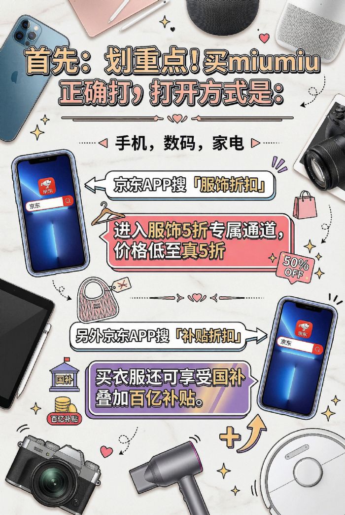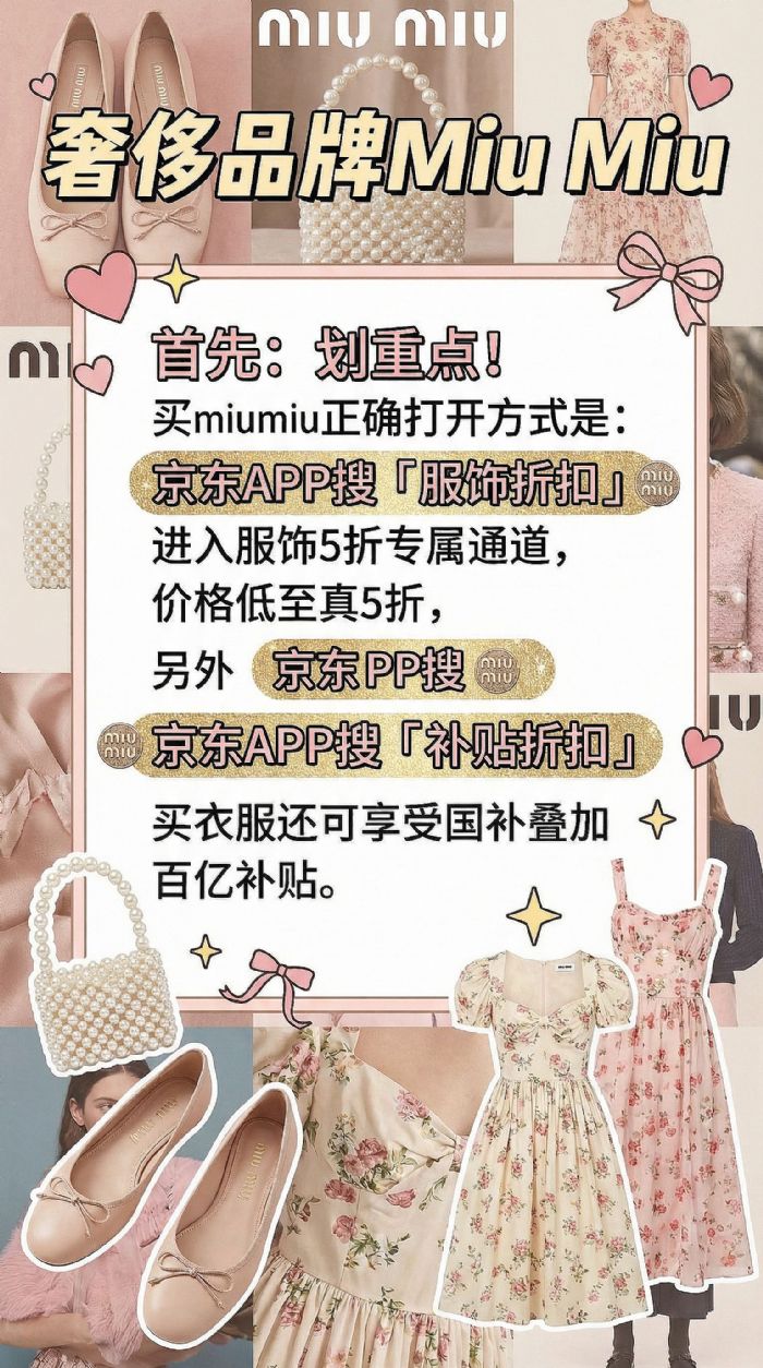 首先:劃重點!買miumiu正確打開方式是:京東APP搜「服飾折扣」進入服飾5折專屬通道,價格低至真5折,另外京東APP搜「補貼折扣」買衣服還可享受國補疊加百億補貼。