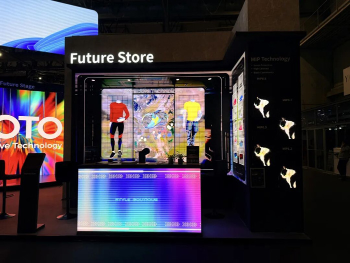奧拓電子將一座能夠“思考”的Future Store沉浸式空間帶到現(xiàn)場,生動展現(xiàn)屏幕如何超越單向播放,成為與消費者實時互動的智能界面。當你對某款商品駐足時,屏幕內容可能會隨之變化,提供更詳細的信息或搭配推薦。這套系統(tǒng)已應用于倫敦牛津街的潮流地標,同一個空間可以在一小時內為不同品牌切換完全不同的氛圍。此前亦為Meta Lab打造了全球首家Ray-Ban智能眼鏡快閃店,技術在這里,徹底服務于“體驗”本身。