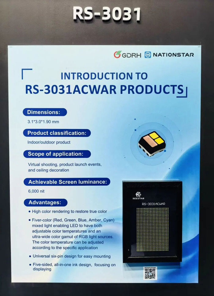 在REESTAR展區(qū),新品RS-3031五色LED因多色塊精密分區(qū)的外形,在眾多全黑封裝產(chǎn)品中尤為顯眼。