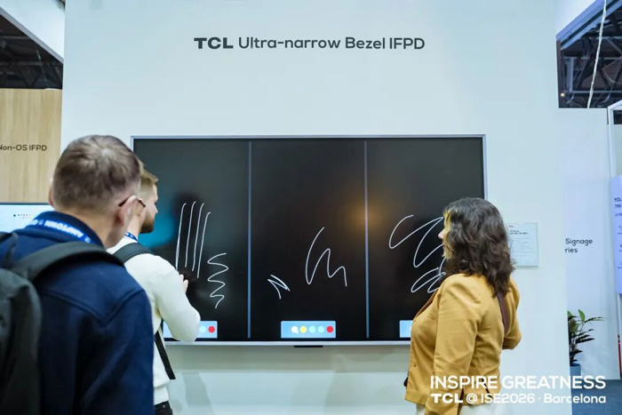 除商用顯示產(chǎn)品外,TCL 亦在 ISE 2026 展示面向教育與企業(yè)場景的定制化IFPD(交互式平板顯示)解決方案,體現(xiàn)其在定制化專業(yè)顯示領域的持續(xù)投入。