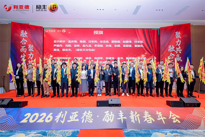 2月6日,“融合共生,聚力共贏”——利亞德2025年度總結(jié)表彰大會(huì)暨2026新春年會(huì)在勵(lì)豐會(huì)議中心成功舉辦。利亞德集團(tuán)董事長李軍,利亞德集團(tuán)總裁、勵(lì)豐文化董事長袁波與各成員公司負(fù)責(zé)人、各業(yè)務(wù)板塊精英齊聚一堂,共敘奮斗情誼,共謀發(fā)展新篇。