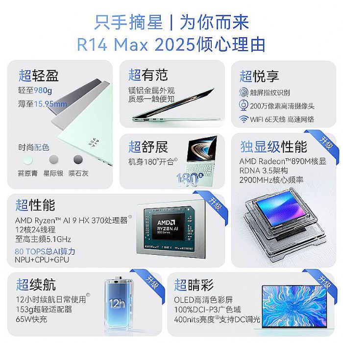 SEAVIV 希未 AideaBook R14 Max 至尊版正是為這一人群量身打造的旗艦算力本,它延續(xù)了≤1kg 的輕薄優(yōu)勢(shì),讓科研學(xué)習(xí)可隨時(shí)隨行,同時(shí)拉滿性能配置。AMD Ryzen™ AI 9 HX 370 旗艦芯片搭配 80TOPS 總 AI 算力,能輕松支撐輕量級(jí) AI 模型本地部署,無(wú)需依賴公有云即可完成基礎(chǔ)科研數(shù)據(jù)運(yùn)算,12 核 24 線程的配置,讓同時(shí)打開(kāi)編程軟件、文獻(xiàn)資料、設(shè)計(jì)工具的操作毫無(wú)卡頓。32GB (LPDDR5-8000MHz)+1TB 海量存儲(chǔ) ,徹底告別存儲(chǔ)焦慮,AMD Radeon™ 890M 獨(dú)顯級(jí)顯卡能輕松完成 4K 素材剪輯、簡(jiǎn)單 3D 建模等創(chuàng)意作業(yè)。14 英寸 2.8K OLED 120Hz 高清屏覆蓋 100% DCI-P3 廣色域,400nits 高亮度在戶外教室、操場(chǎng)也能清晰可視,專屬的SEAVIV AI 助手還能提取課件重點(diǎn)、優(yōu)化論文排版、輔助編程代碼校對(duì),堪稱科研和輕創(chuàng)意學(xué)習(xí)的貼身搭檔。