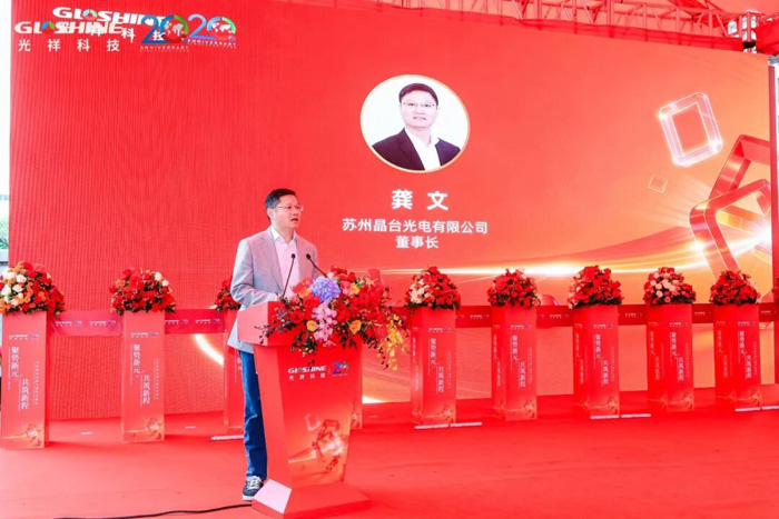 喬遷典禮以“聚勢新元,共筑新程”為主題,在萬眾歡騰中拉開帷幕。國內(nèi)客戶代表深圳市炫彩視聽設(shè)備有限公司董事長王敏、供應(yīng)商代表蘇州晶臺光電有限公司董事長龔文先后登臺致辭,對光祥科技二十載發(fā)展成就致以祝賀,對新總部喬遷表達(dá)美好期許,紛紛表示將繼續(xù)深化與光祥的協(xié)同合作,攜手共筑行業(yè)生態(tài)共贏新格局。