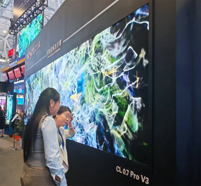 作為微小間距顯示領(lǐng)域的核心技術(shù)突破,LED 冷屏 MIP 產(chǎn)品堪稱本次展示區(qū)的 “技術(shù)擔(dān)當(dāng)”!依托芯片級(jí)封裝工藝,融合 Micro LED 芯片的高性能與成熟封裝技術(shù)的高兼容性,實(shí)現(xiàn) P0.9-P1.5 全間距覆蓋,完美適配高端商業(yè)顯示、超高清會(huì)議室等前沿場(chǎng)景。搭載 MIP+HOB 雙重技術(shù)加持,不僅讓顯示畫面實(shí)現(xiàn)高對(duì)比度、高亮度,墨色均勻無(wú)顆粒感,更擁有防水、防撞、防塵等八大防護(hù)性能,兼顧極致畫質(zhì)與超強(qiáng)可靠性;配合全倒裝芯片無(wú)焊線設(shè)計(jì),可視角度大幅提升。