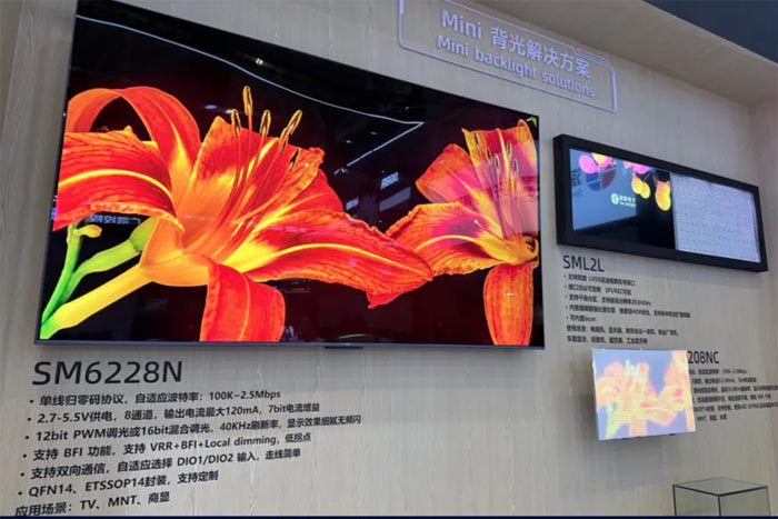 本次展會,明微電子推出的全場景 Mini LED 背光驅(qū)動 SM6208NC成為焦點產(chǎn)品之一。該芯片專為多元應(yīng)用打造,擁有 6-38V 寬壓供電能力與 8 通道輸出,集成 7bit 電流增益調(diào)節(jié),搭配 16bit PWM 調(diào)光和 39.8KHz 高刷新率,從技術(shù)層面保障了畫面的細膩度與無頻閃效果。同時,其內(nèi)置灰階時鐘,并采用恒流錯相技術(shù),從源頭有效降低 EMI 干擾,大幅提升了產(chǎn)品的穩(wěn)定性。值得一提的是,SM6208NC還擁有通過 AEC-Q100 認證的車規(guī)版本,可全面滿足顯示器、電視、商顯及車載顯示等場景對產(chǎn)品可靠性與畫質(zhì)的嚴苛要求,實現(xiàn)了全場景覆蓋。
