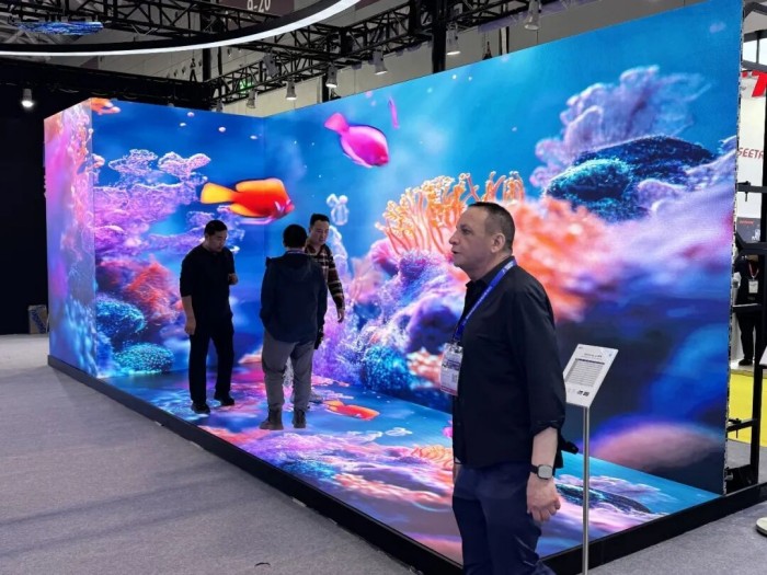 針對(duì)沉浸式場(chǎng)景需求,耕創(chuàng)電子推出的Gprime-D GOB P1.95地屏產(chǎn)品,實(shí)現(xiàn)了與主屏的無縫銜接。該產(chǎn)品具備超強(qiáng)的抗壓性能,每平米可承受4噸重量,同時(shí)達(dá)到IP65防水等級(jí),能夠適應(yīng)不同的戶外及室內(nèi)復(fù)雜環(huán)境,無論是XR虛擬影棚、汽車展廳,還是大型演藝活動(dòng)現(xiàn)場(chǎng),都能穩(wěn)定運(yùn)行,為沉浸式場(chǎng)景搭建提供了可靠的產(chǎn)品支撐。