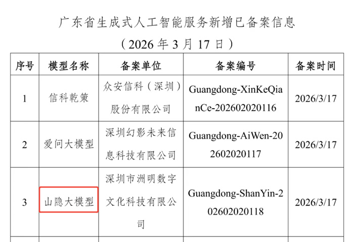2026年3月17日,由洲明集團(tuán)旗下全資AI子公司——洲明數(shù)字文化自主研發(fā),“中華優(yōu)秀傳統(tǒng)文化大模型”(山隱大模型)成功完成生成合成類算法+生成式人工智能服務(wù)的“雙備案”。