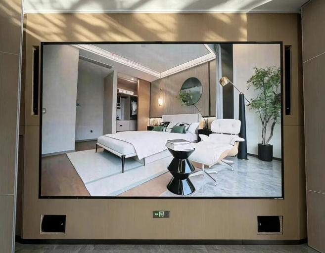 此外,該大屏還采用了行業(yè)領(lǐng)先的COB全倒裝工藝,具備更高的對比度、更均勻的色彩表現(xiàn)和更出色的防護(hù)性能。在實際應(yīng)用中,無論是播放企業(yè)宣傳片還是展示產(chǎn)品設(shè)計細(xì)節(jié),該大屏都能以細(xì)膩無顆粒感的畫質(zhì),精準(zhǔn)還原每一處色彩與細(xì)節(jié)。高達(dá)4320×2430的分辨率,讓4K內(nèi)容得以完美釋放,畫面中的紋理、光影、文字邊緣都清晰銳利,為參觀者帶來身臨其境的視覺震撼。