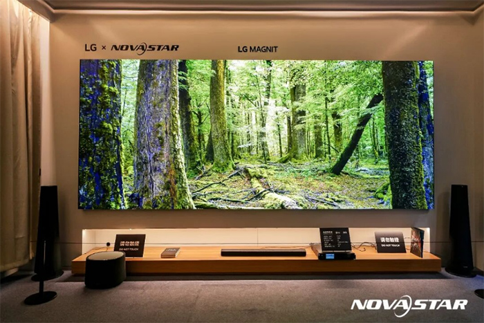 方案搭載LG室內(nèi)固裝旗艦產(chǎn)品MAGNIT Micro LED顯示屏,諾瓦星云COEX 5G解決方案(MX2000 Pro & XA50 Pro)提供系統(tǒng)支持,融合諾瓦星云核心算法,為影視觀看、電競(jìng)游戲等家庭客廳場(chǎng)景應(yīng)用,帶來非凡體驗(yàn)。