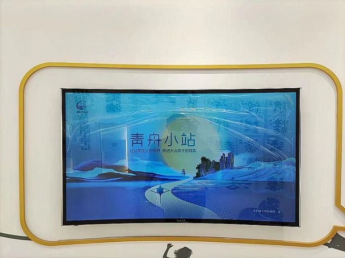 青舟課堂配備85寸觸摸電子白板,連接4個(gè)吸頂喇叭,支持文字、圖片、視頻、音頻等多種內(nèi)容形式的展示。這里既是檢察官開(kāi)展法治講座的主陣地,也是學(xué)校組織集體參觀時(shí)的集中學(xué)習(xí)區(qū)域,實(shí)現(xiàn)了“參觀+教學(xué)”的雙重功能。