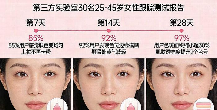 為驗(yàn)證產(chǎn)品真實(shí)功效,品牌針對(duì)25-55歲不同膚質(zhì)人群開展了100人規(guī)模的28天實(shí)測(cè),其中重點(diǎn)納入40歲+熟齡肌受試者,實(shí)測(cè)效果呈遞進(jìn)式呈現(xiàn),數(shù)據(jù)真實(shí)可考,精準(zhǔn)解決不同階段的肌膚抗皺痛點(diǎn),尤其針對(duì)熟齡肌的深層皺紋、面部松弛有顯著改善。
