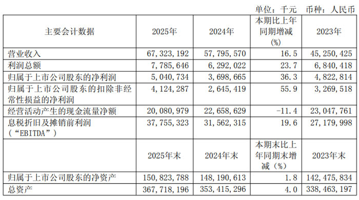 2025 年,中芯國際頂住外部復(fù)雜環(huán)境壓力,聚焦主業(yè)深耕晶圓制造,經(jīng)營業(yè)績表現(xiàn)亮眼。報(bào)告期內(nèi),公司實(shí)現(xiàn)營業(yè)收入 673.23 億元,同比增長 16.5%;歸屬于上市公司股東的凈利潤 50.41 億元,同比大幅增長 36.3%;扣除非經(jīng)常性損益后的歸屬于上市公司股東的凈利潤 41.24 億元,同比增長 55.9%,盈利能力顯著提升。