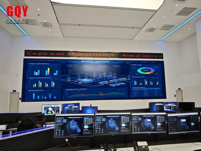 GQY視訊本次為老撾EDL電力調(diào)度大廳打造的DLP大屏可視化系統(tǒng),主要由80寸玻璃屏幕組成的4×8高清DLP大屏及6.4㎡單色LED條屏構(gòu)成。LED條屏節(jié)能優(yōu)勢(shì)突出,可醒目展示關(guān)鍵信息;高清DLP大屏具備高刷新率、高分辨率、低亮高灰等優(yōu)異特性,結(jié)合可視化技術(shù)實(shí)現(xiàn)多系統(tǒng)數(shù)據(jù)融合展示。系統(tǒng)采用全冗余架構(gòu),電源與信號(hào)雙冗余熱備份,可7×24小時(shí)穩(wěn)定不間斷運(yùn)行,有效避免調(diào)度過程中黑屏、卡頓等風(fēng)險(xiǎn),同時(shí)支持多畫面同屏顯示,實(shí)現(xiàn)多區(qū)域電網(wǎng)工況實(shí)時(shí)監(jiān)控,助力調(diào)度人員快速掌握全網(wǎng)運(yùn)行態(tài)勢(shì),提升調(diào)度操作與應(yīng)急響應(yīng)效率。