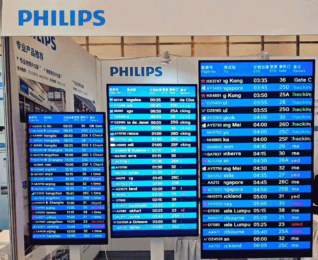 針對(duì)航站樓復(fù)雜視覺(jué)環(huán)境與高安全需求,飛利浦商顯提供專業(yè)定制化硬件配置,嚴(yán)格遵循《民用機(jī)場(chǎng)公共信息標(biāo)識(shí)系統(tǒng)設(shè)置規(guī)范》(MH/T 5059-2021)等行業(yè)標(biāo)準(zhǔn)。