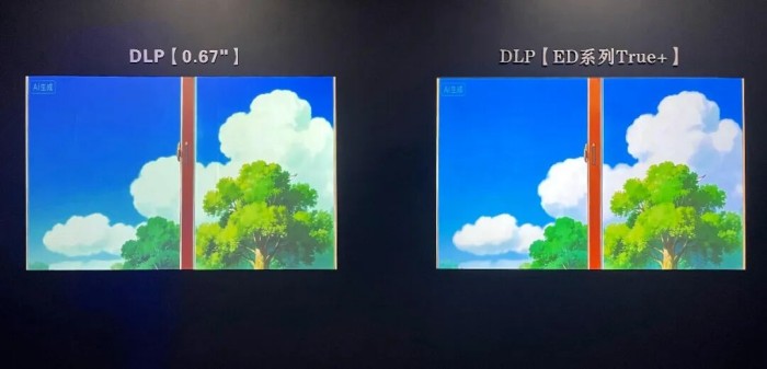 在展覽館等暗場低光的環(huán)境模擬下,視美樂True+真彩系列則展現(xiàn)了其在暗場環(huán)境下的專業(yè)級表現(xiàn),99%的REC.709色域覆蓋率及D75優(yōu)化白場技術(shù)確保每一幀投影畫面都能真實還原自然原色。相較于常規(guī)投影機在暗場環(huán)境下容易出現(xiàn)的色偏、暗部細節(jié)丟失等問題,現(xiàn)場實測中,True+真彩系列徹底告別暗場下的“發(fā)灰”現(xiàn)象,發(fā)揮高飽和度、高亮度優(yōu)勢,讓每一處細節(jié)都清晰可辨。