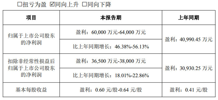 根據(jù)業(yè)績預告,華工科技 2026 年第一季度預計實現(xiàn)歸屬于上市公司股東的凈利潤6.00 億元至 6.40 億元,上年同期為4.10 億元,同比增長46.38% 至 56.13%;預計扣除非經(jīng)常性損益后歸屬于上市公司股東的凈利潤3.65 億元至 3.80 億元,上年同期為3.09 億元,同比增長18.01% 至 22.86%;久抗墒找骖A計為0.60 元 / 股至 0.64 元 / 股,上年同期為0.41 元 / 股。