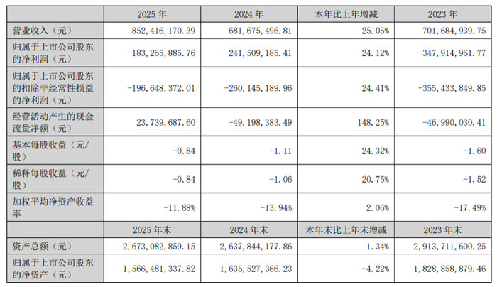 2025 年,富滿微實(shí)現(xiàn)營業(yè)收入8.52 億元,同比增長(zhǎng) 25.05%;歸屬于上市公司股東的凈利潤(rùn)-1.83 億元,同比減虧 24.12%;扣除非經(jīng)常性損益后的凈利潤(rùn)-1.97 億元,同比減虧 24.41%,經(jīng)營業(yè)績(jī)呈現(xiàn)持續(xù)改善態(tài)勢(shì)。