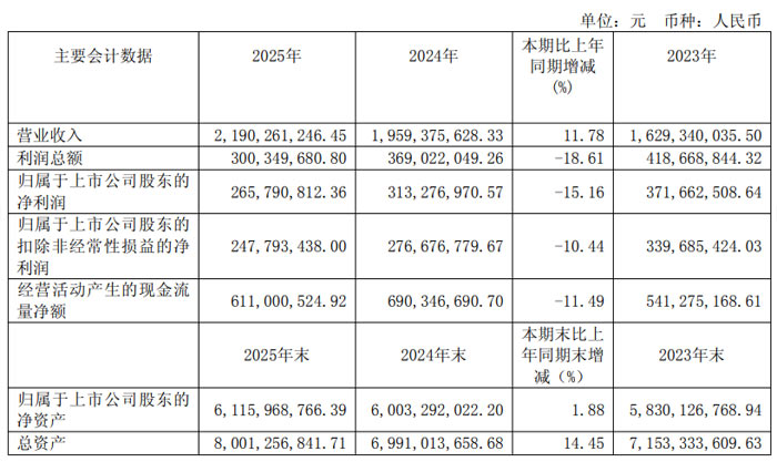 在股東回報(bào)方面,公司 2025 年實(shí)施中期分紅 + 年度分紅方案,全年現(xiàn)金分紅總額1.18 億元,疊加股份回購金額,合計(jì)2.18 億元,占當(dāng)年凈利潤比例達(dá) 82.18%。2025 年度利潤分配預(yù)案為每 10 股派發(fā)現(xiàn)金紅利 0.5 元(含稅),不轉(zhuǎn)增、不送紅股,以穩(wěn)健分紅政策保障投資者收益。
