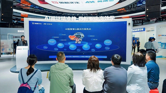 在6號館的奧威亞展位上,“AI循證精準教,數(shù)據(jù)驅動高效學”的主題貫穿始終,一套從課堂提質到區(qū)域均衡、從教師發(fā)展到學生關懷的“AI+教育”生態(tài)完整呈現(xiàn)。