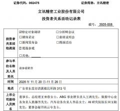 針對市場關(guān)注的 “一號工程” 反射光波導黃金線項目,公司表示,該項目整體推進態(tài)勢超出年初預(yù)期,目前已邁入核心攻堅階段,關(guān)鍵工藝環(huán)節(jié)與流程優(yōu)化工作正有序開展。由于項目涉及客戶商業(yè)協(xié)定中的保密條款,相關(guān)技術(shù)參數(shù)、合作細節(jié)等具體信息暫無法對外披露,后續(xù)將在信息披露條件成熟后及時公開交流。 …詳情>>