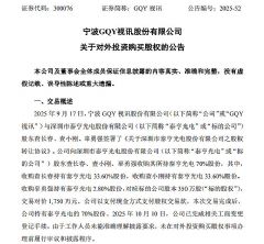 2025 年 10 月 20 日,寧波 GQY 視訊股份有限公司(證券代碼:300076,簡稱 “GQY 視訊”)發(fā)布公告,宣布已以 1750 萬元自有資金完成對深圳市泰亨光電股份有限公司(簡稱 “泰亨光電”)70% 股權的收購,相關工商變更登記已于 10 月 10 日辦結!詳情>>