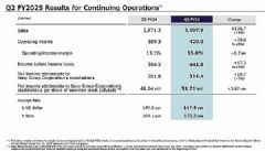 2025財年第二季度,索尼集團實現(xiàn)銷售收入31,079億日元,同比增長5%;營業(yè)利潤為4,290億日元,同比增長10%;凈利潤達到3,114億日元…詳情>>