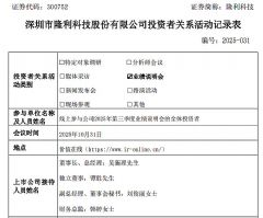 2025 年 10 月 31 日,利亞德光電股份有限公司以電話會議形式舉辦投資者關系活動,董事會秘書兼副總經(jīng)理劉陽及證券事務代表梁清筠接待調研,就公司核心業(yè)務布局、轉型措施、創(chuàng)新產(chǎn)品進展及未來發(fā)展規(guī)劃等內容與機構投資者深入交流。 …詳情>>